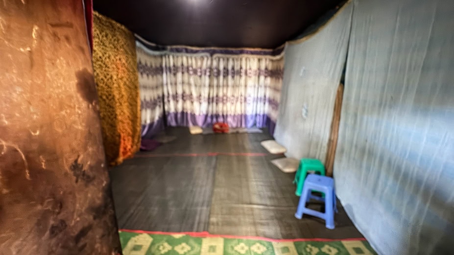 Zurück zur Situation im Zelt. Ich schaue mich weiter um, schaue den Anwesenden in die Augen und höre mir ihre Geschichten an. Außer einem großen Teppich und ein paar Matratzen gibt es hier nichts. Gekocht wird in einer Grube im Boden mit Holzkohle vor dem Zelt, die von mehreren Zelten gemeinsam genutzt wird. Manchmal gibt es jedoch nur wenig Wasser, um ihren Hunger zu stillen. „Was bleibt jemandem, der nichts mehr hat?“, frage ich mich. Genau. Nichts.
